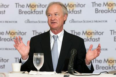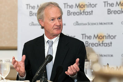 Democratic presidential candidate Lincoln Chafee. Michael Bonfigli/The Christian Science Monitor
