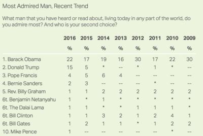 America’s top political figures, including President-elect Trump, are 2016’s “most admired.”