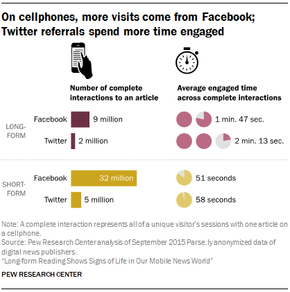“Facebook sends by far the most mobile readers to news sites of any social media site,” said Pew.