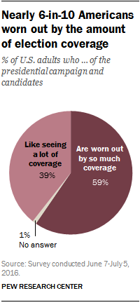 Pew found that 59 percent “feel exhausted” by the election coverage.