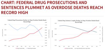 While drug overdoses have skyrocketed, federal prosecutions of dangerous drug traffickers have plummeted by 21 percent since 2011. Even when drug traffickers are prosecuted, they are receiving more lenient sentences: the average sentence for federal drug offenses has decreased by 19 percent since 2009. The sharpest decline in prosecutions and in average sentences for convicted federal drug felons has occurred since 2013, when then-Attorney General Eric Holder ordered Federal prosecutors not to charge certain drug felons with offenses that carry mandatory minimum sentences. This was a clear statement of administration policy to prosecutors – ease up on drug prosecutions.