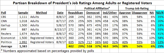 And, said the report from Bombthrowers.com, one outfit, the Economist, used 58 percent more Democrats than Republicans in a recent poll on Trump’s approval ratings.