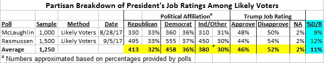 He also noted that the random sample used by many pollsters includes too many liberals and even illegal immigrants, and said that choosing “likely voters” is the best gauge. McLaughlin and Rasmussen use likely voters and show Trump’s approval rating higher than the others.