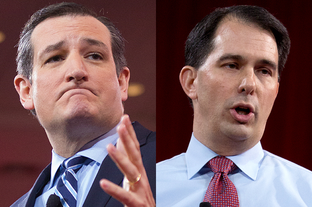 Sen. Ted Cruz and Wisconsin Gov. Scott Walker are the targets of Warren’s warning. AP Photos