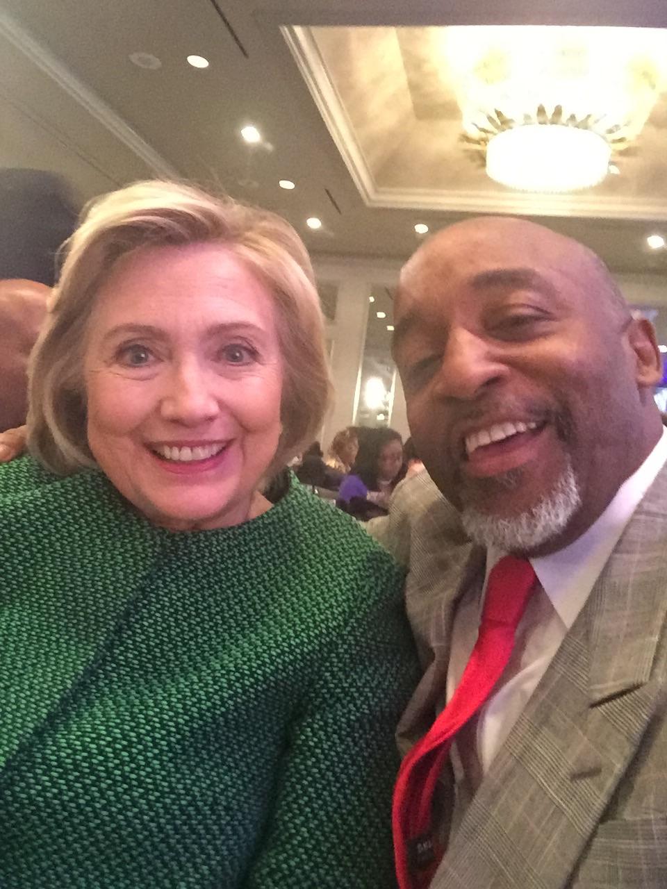 His website shows a picture of him with 2016 presidential candidate Hillary Rodham Clinton.