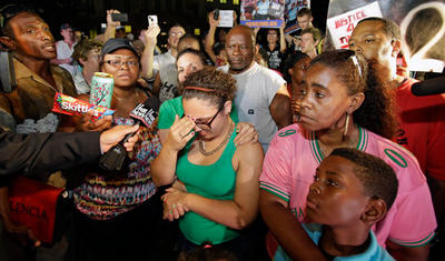 Demonstrators outside the Seminole County Courthouse react after hearing the verdict of “not guilty” in the trial of George Zimmerman in Sanford, Florida. (AP Photo/John Raoux) But the findings varied sharply along racial lines, with 68 percent of blacks in disagreement and 54 percent of whites agreeing that the jury made the right decision in the case.