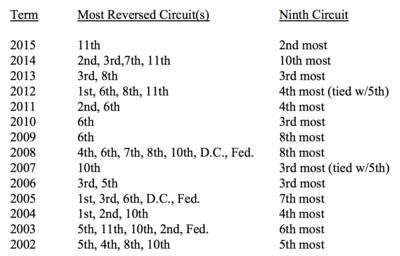 But Thomas suggested that the better way to look at the data is to limit the window of reversals to the era of Chief Justice John Roberts. During that time, the 9th has never been the most overturned, though in 2015 it was second.
