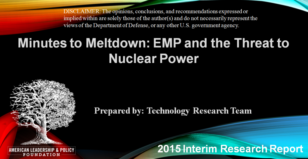 His group’s report, “Electromagnetic Pulse and Space Weather and the Strategic Threat to America’s Nuclear Power Stations,” studies the potential EMP and solar weather impact to the nation’s collection of nuclear plants.