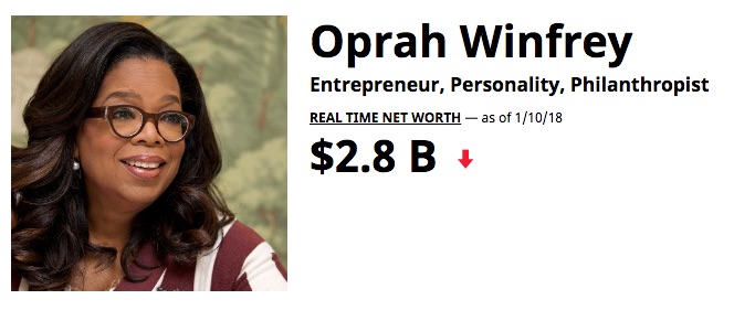 Forbes lists Oprah Winfrey as among the world’s richest.
