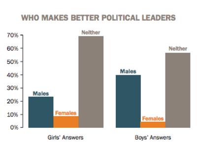 — 40% of teen boys preferred male over female political leaders while only 4% preferred female political leaders with 56% expressing no preference.