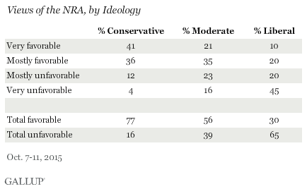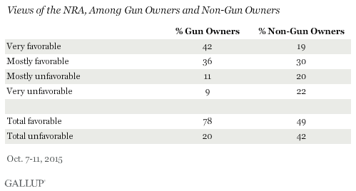 Gallup said that 49 percent of non-gun owners have a favorable opinion of the NRA, while 42 percent don’t. And 56 percent of “moderates” have a favorable view of the organization.