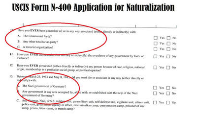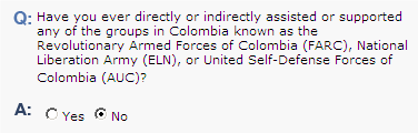 However, detailed written questions are asked about Nazi cooperation, as are questions about whether applicants are drunks, polygamists, or Communists. One survey does single out Colombian terror organizations in the written questions, though they have never attacked inside the U.S.