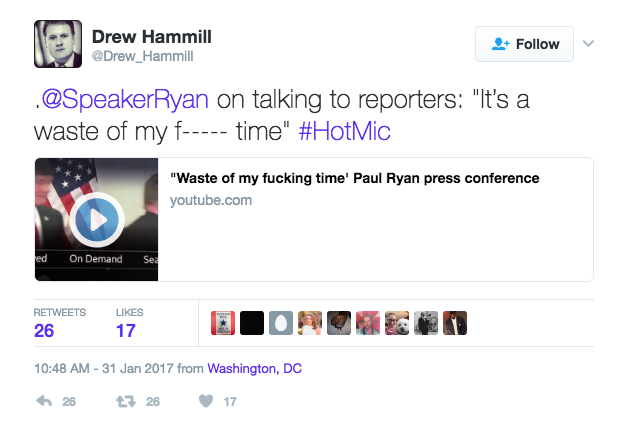 Except the voice heard in the video shared by Pelosi’s deputy chief of staff, Drew Hamill, clearly doesn’t belong to Ryan.