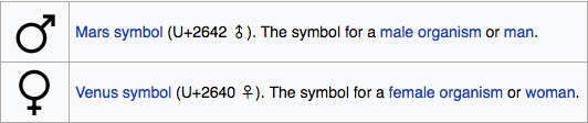 Here’s a quick crash course in the gender symbols (via the very accessible Wikipedia):