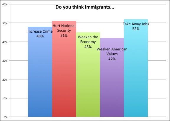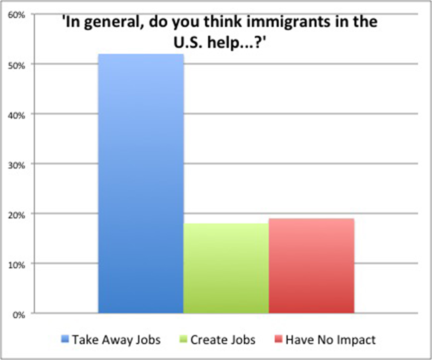 “In general, do you think immigrants in the United States help create jobs, take away jobs, or have no impact on jobs?”