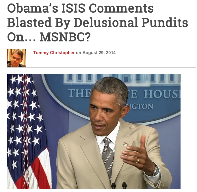 MSNBC’s Steve Benen, writing for Rachel Maddow’s blog, blasted the criticism of Obama’s comment as “manufactured outrage.” He wrote, “Indeed, what strikes me as especially bizarre about this latest hullabaloo is how unnecessary it is. Congressional Republicans have spent the last two weeks saying they want to see Obama’s strategy for dealing with ISIS in Syria. The president said yesterday he’s still crafting a strategy for dealing with ISIS in Syria. None of this is exactly stop-the-presses material.”