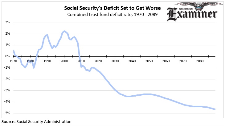 If left unreformed, Social Security’s deficit will only get worse in the coming decades. The program ran a surplus from 1984 to 2009, but has run a deficit since then and is never projected to recover. By 2065, the deficit will have tripled from current levels.