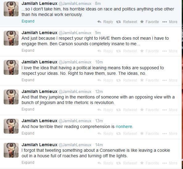 Jamilah Lemieux, senior digital editor for Ebony, began a Twitter war when she joked about having drinking games prepared for reading Dr. Ben Carson and Armstrong Williams’ new magazine for black conservatives.