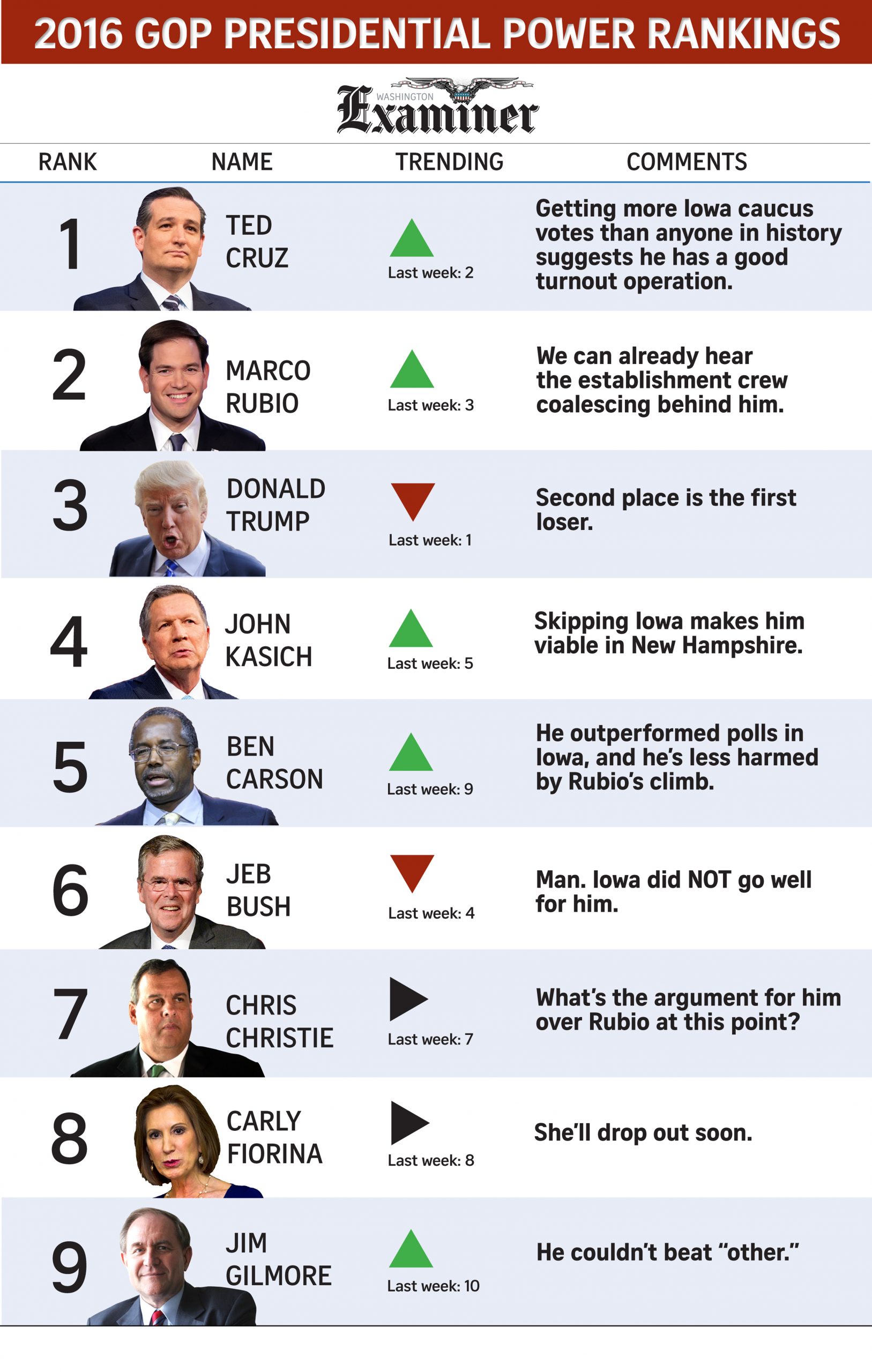 Ted Cruz beat the polls and beat Donald Trump Monday in Iowa, garnering the most votes in the history of the Iowa caucuses. Marco Rubio finished a strong third. If history is a guide, those are the only three tickets out of Iowa.
