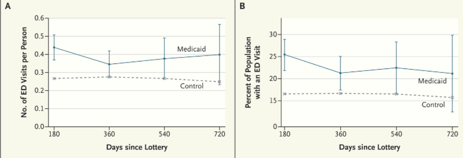 Forget it. As Doctors Finkelstein, Taubman, Allen, Wright, and Baicker showed in their landmark October 2016 paper, Medicaid expansion has led to a significant increase in emergency room usage. The chart below from the study indicates just how significant, and expensive, that usage is.