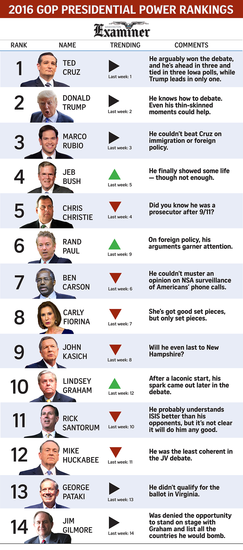 Tuesday night’s debates didn’t change much in the Power Rankings, but they probably cemented Rubio, Cruz, and Trump as the only three candidates with serious chances of winning the nomination.