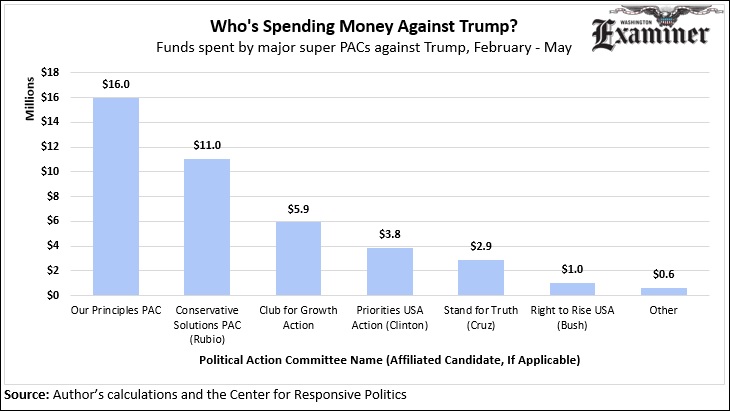 Since the Republican presidential primaries began on Feb. 1 in Iowa, major super PACs have spent more than $40 million to attack Donald Trump.