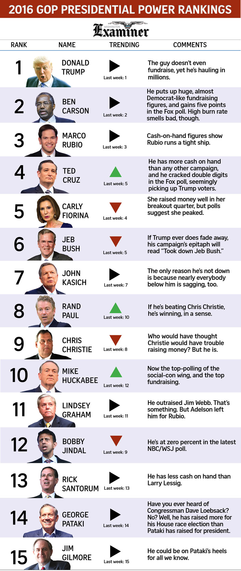Third-quarter fundraising figures came in October 15, and they tell an interesting story. Chris Christie, despite his ties to New York power centers, isn’t bringing in the cash. John Kasich, despite winning the hearts of the maistream media, hasn’t brought in that many donors. And Donald Trump, despite not soliciting donations, is hauling in millions.