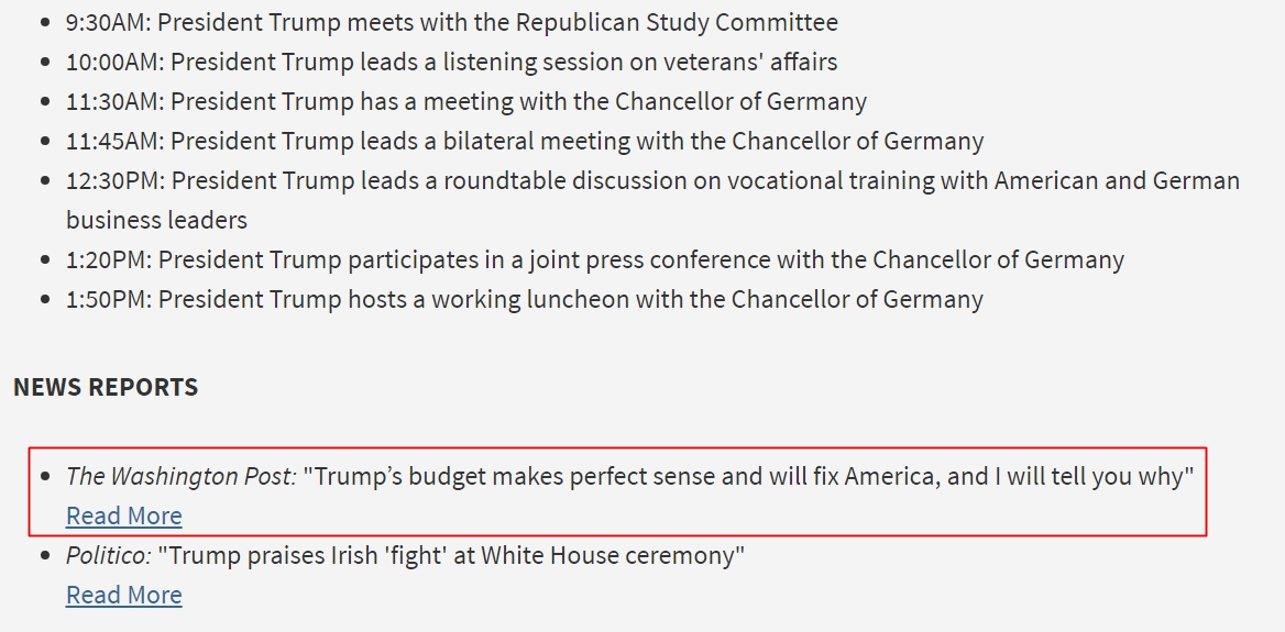 Had White House staffers read the article before directing thousands of readers to its existence, they would’ve known it was the exact opposite of positive coverage for Trump’s budget. What possible reason would they have had to include the article if they knew it was a joke? The simplest explanation is, of course, also the most likely: They didn’t read it.