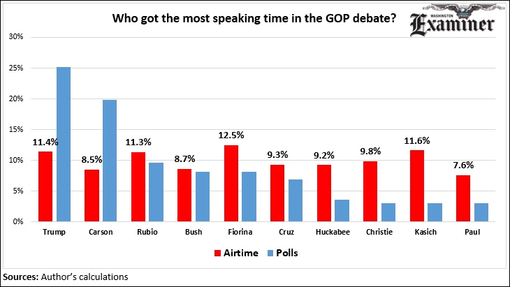 On the other hand, if you think higher-polling candidates should have gotten more speaking time, Donald Trump didn’t speak enough, nor did Ben Carson.