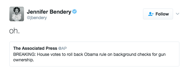 From the Associated Press: “House votes to roll back Obama rule on background checks for gun ownership.”
