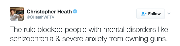 From NPR: “House votes to overturn Obama rule restricting gun sales to the mentally ill.”