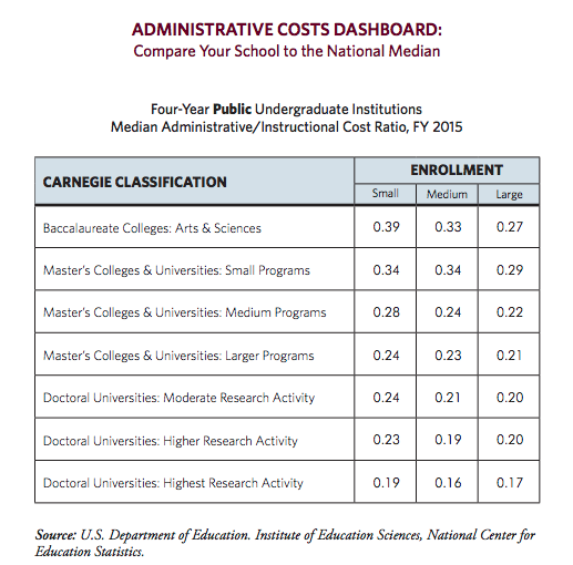 That aside, it’s only when the report lists its data in an administrative instructional cost ratio basis that we see the scale of the challenge. Consider the situation at higher education public institutions.