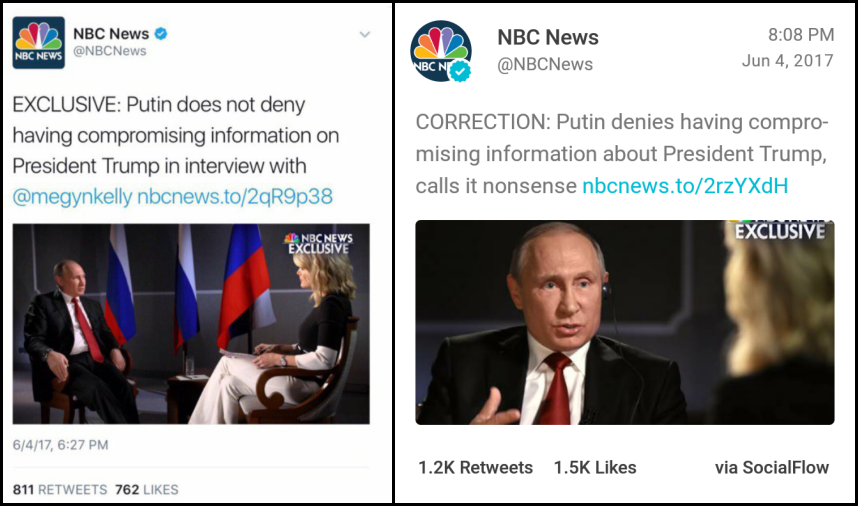 Mistakes happen, and everyone is fallible. But NBC News’ official Twitter account did the network no favors this week when it bungled a note regarding Megyn Kelly’s recent interview with Russian President Vladimir Putin.