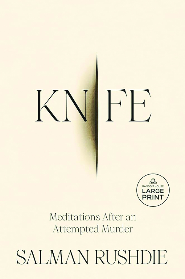 Rushdie says Knife is a book he’d “much rather not have needed to write.” After the attempt on his life, he believed he would never write again. He later realized that only by writing this book could he move on. “To write would be my way of owning what had happened, taking charge of it, making it mine, refusing to be a mere victim,” he declares. “I would answer violence with art.” On this occasion, his art is brave, inspiring, and utterly engrossing.