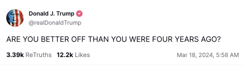 So, why is former President Donald Trump eagerly asking the question on social media, “Are you better off than you were four years ago?”
