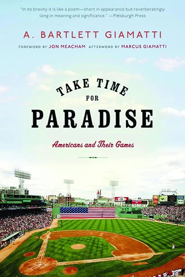“Bart” Giamatti, as he was known publicly, father of Academy Award-nominated actor Paul Giamatti, peppered the slim (109 pages) book with Greek phrases. Take Time For Paradise alludes to a variety of scholars from Aristotle on who have philosophized on the idea of leisure. The author argues that organized sport constitutes a sort of religious ritual. We do not seek immortality by setting records, he says; it is the communal experience that is paramount. The longing for this Garden of Eden, he suggests, draws us to the ballparks.