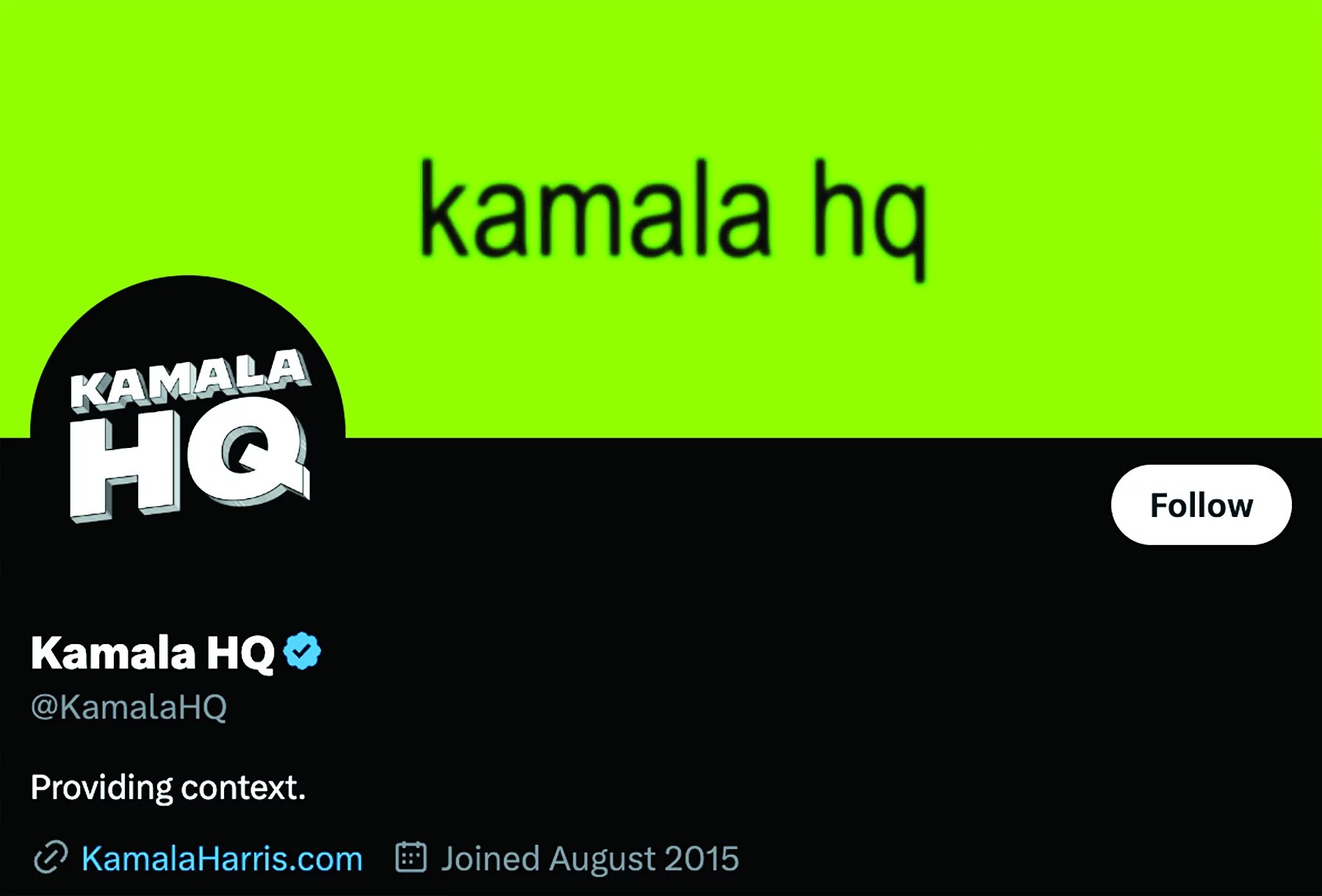 Charli XCX released her sixth studio album, Brat, in June. The cover, a simple lime green backdrop to the word “brat” in a pixelated, old-internet-style font, was made to be memed. And that’s exactly what the Harris campaign did, with its cover image on X reading “Kamala HQ” in the same iconic styling. Weeks before the Harris campaign began, media outlets had been proclaiming that we are living in “brat summer.” Harris just embraced it.