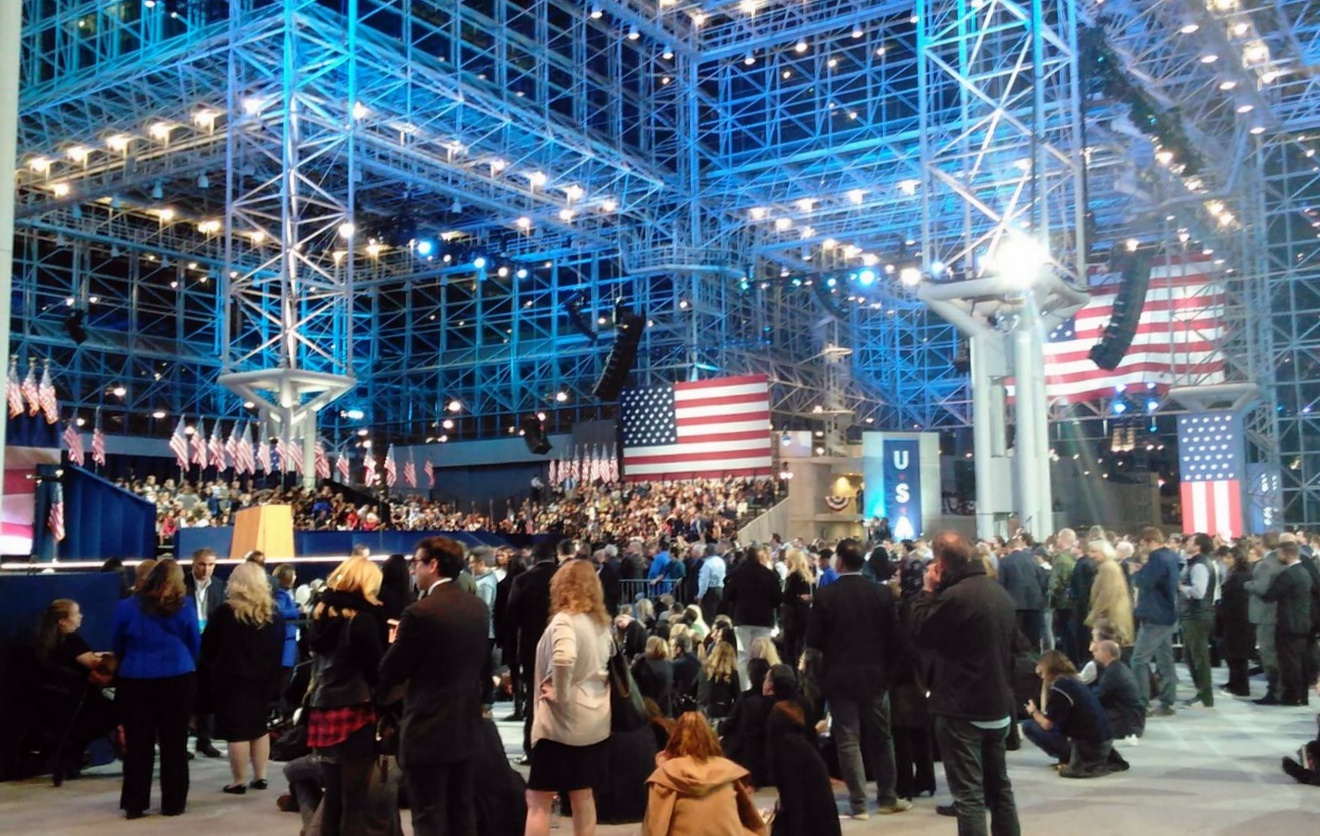 Some supporters remained in the bleachers, which were set up around a stage shaped like the United States, and others milled about in the open areas near the media risers. The Clinton faithful were waiting for some last-minute miracle for the Democratic presidential candidate. Midnight came and went, and the miracle didn’t come. It would never come.