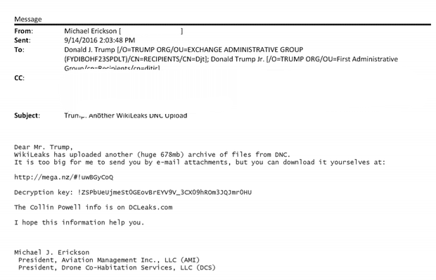 Their reports claimed the 2016 GOP nominee, his son Donald Trump Jr. and various campaign advisers received an email on Sept. 4, 2016, offering them advance access to an impending WikiLeaks dump of emails stolen from Democratic National Committee staffers and Hillary Clinton’s campaign chairman, John Podesta.