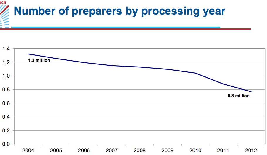 The number of preparers is dropping. Returns per preparer is rising. The number of small preparers fell dramatically, as the full study shows.