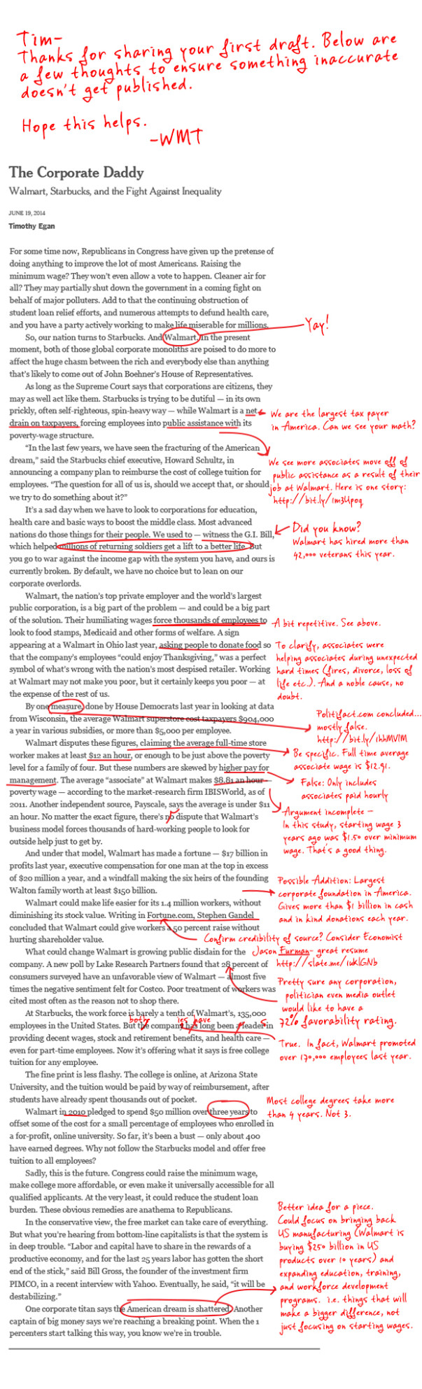 Basically, Walmart took a red pen to the New York Times story and issued a pretty scathing rebuttal.