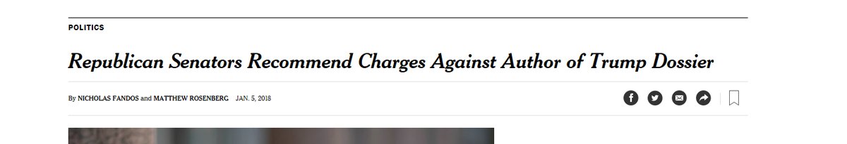And yet, here’s the headline that the New York Times published on Friday: “Republican Senators Recommend Charges Against Author of Trump Dossier.”