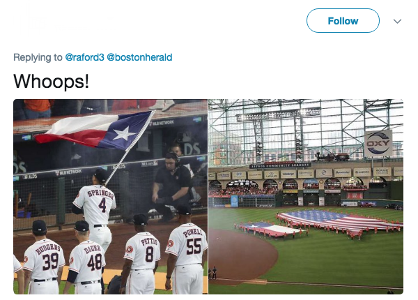 However, for the Boston Herald, an entirely different and unique story played out during the opening ceremonies at Minute Maid Park.