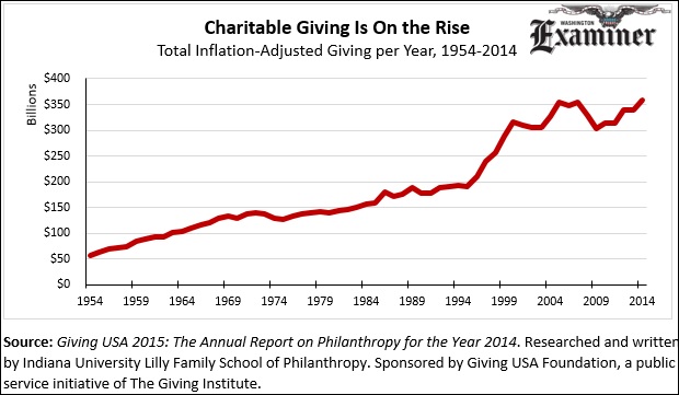 “The 60-year high for total giving is a great story about resilience and perseverance,” said Keith Curtis, chair of the Giving USA Foundation. “With virtually every economic indicator that gets measured showing growth, I think it’s safe to conclude they played a large part in making 2014 a banner year for giving from every source.”