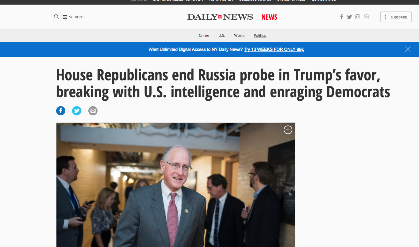 Consider the divergent coverage of this week’s House Intelligence Committee report on Trump collusion, and the Senate Intelligence Committee’s 2014 report on the CIA’s interrogation program.