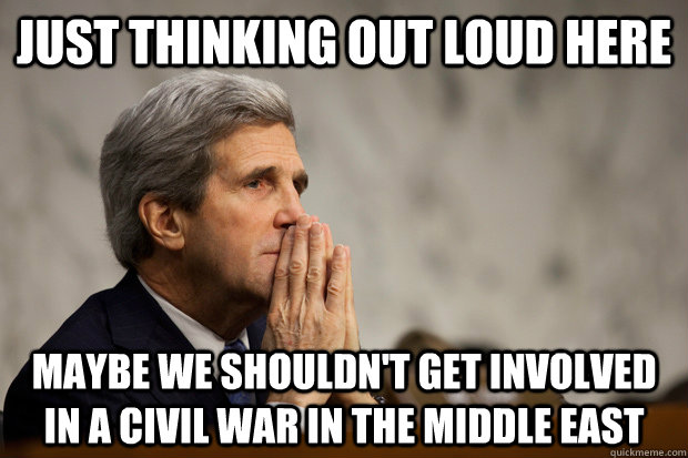 Secretary of State John Kerry told the Senate Finance committee that he would not “take off the table an option” to put boots on the ground in Syria. Pressed by senators, Kerry responded that he was just “thinking out loud.”