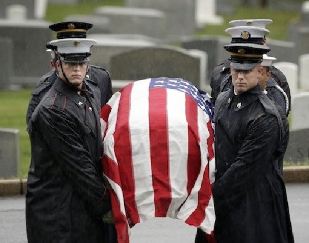 12) ARLINGTON, VA – JUNE 7: The flag draped casket of the late New Jersey Sen. Frank Lautenberg is carried by members of the Joint Military Casket Team during burial services at Arlington National Cemetery on June 7, 2013 in Arlington, Virginia. Lautenberg, who died Monday at age of 89 after suffering complications from viral pneumonia, was the last World War II veteran in the Senate.