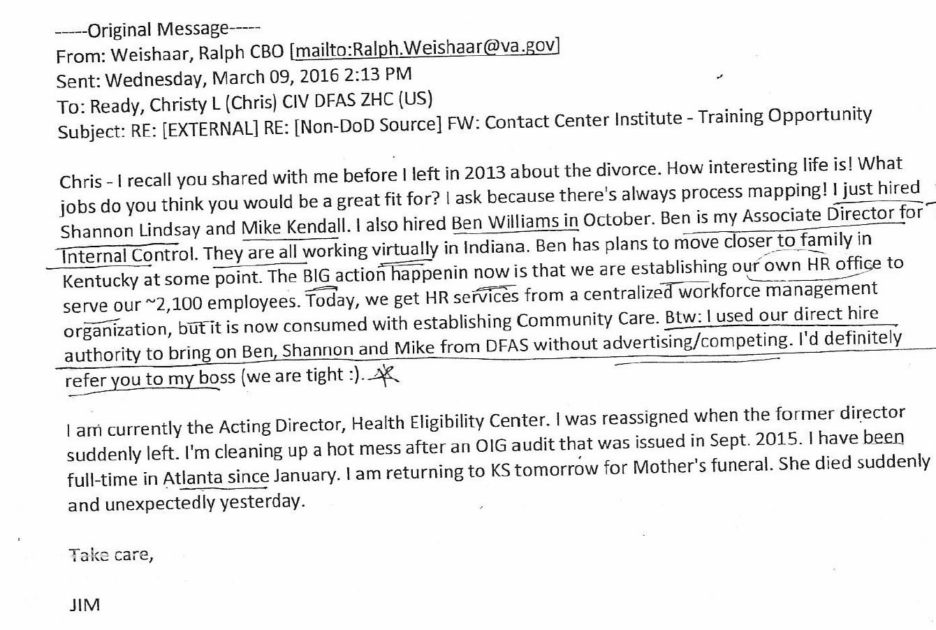 Mr. President, the level of accountability is so bad under the current leadership that VA managers openly brag about how they can use the direct hire process intended for disabled Veterans to create $100,000+ noncompetitive work from home jobs to their friends: