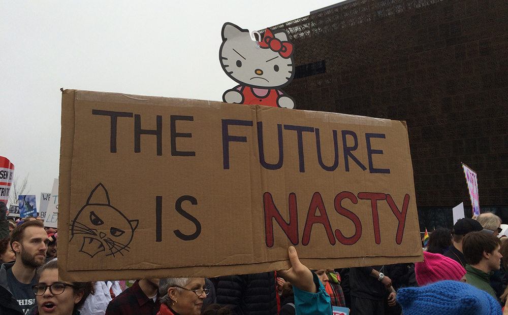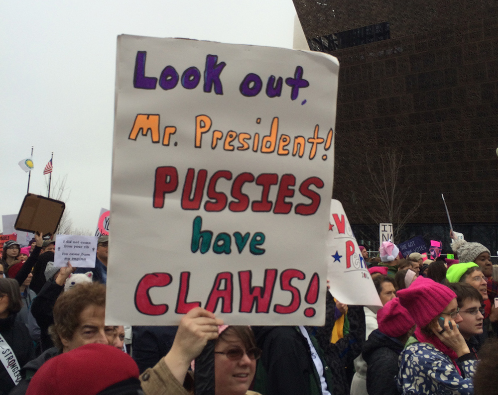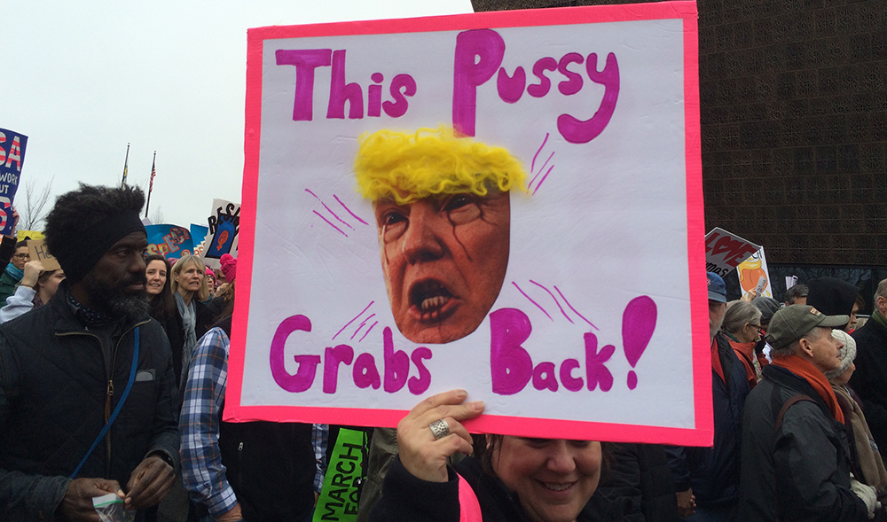 But many, many signs were rooted in the “Access Hollywood” video — a fixation which suggests protesters will try to make the video a recurring theme in resistance to President Trump. If that’s the case, then here, from the Women’s March, is a preview of things to come.