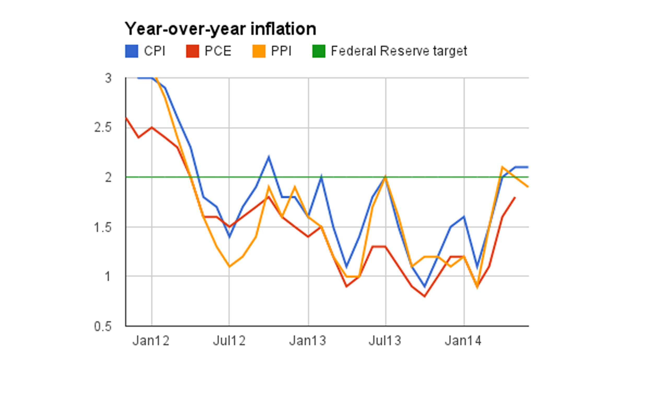 For the Federal Reserve, which is trying to stabilize inflation at 2 percent, the report is a mixed bag. Headline inflation flattening out raises the possibility that the months-long move away from very low inflation may have been yet another short-term fluctuation and not a longer trend back toward normal.